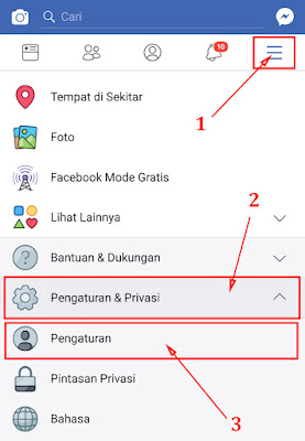 1. Pertama silahkan buka Aplikasi Facebook, lalu masuk ke menu pengaturan dengan cara sentuh ikon strip tiga dibagian atas, pilih Pengaturan & Privasi dan Pengaturan.2. Kemudian masuk ke menu "Informsi Pribadi" untuk memulai menyunting nama.